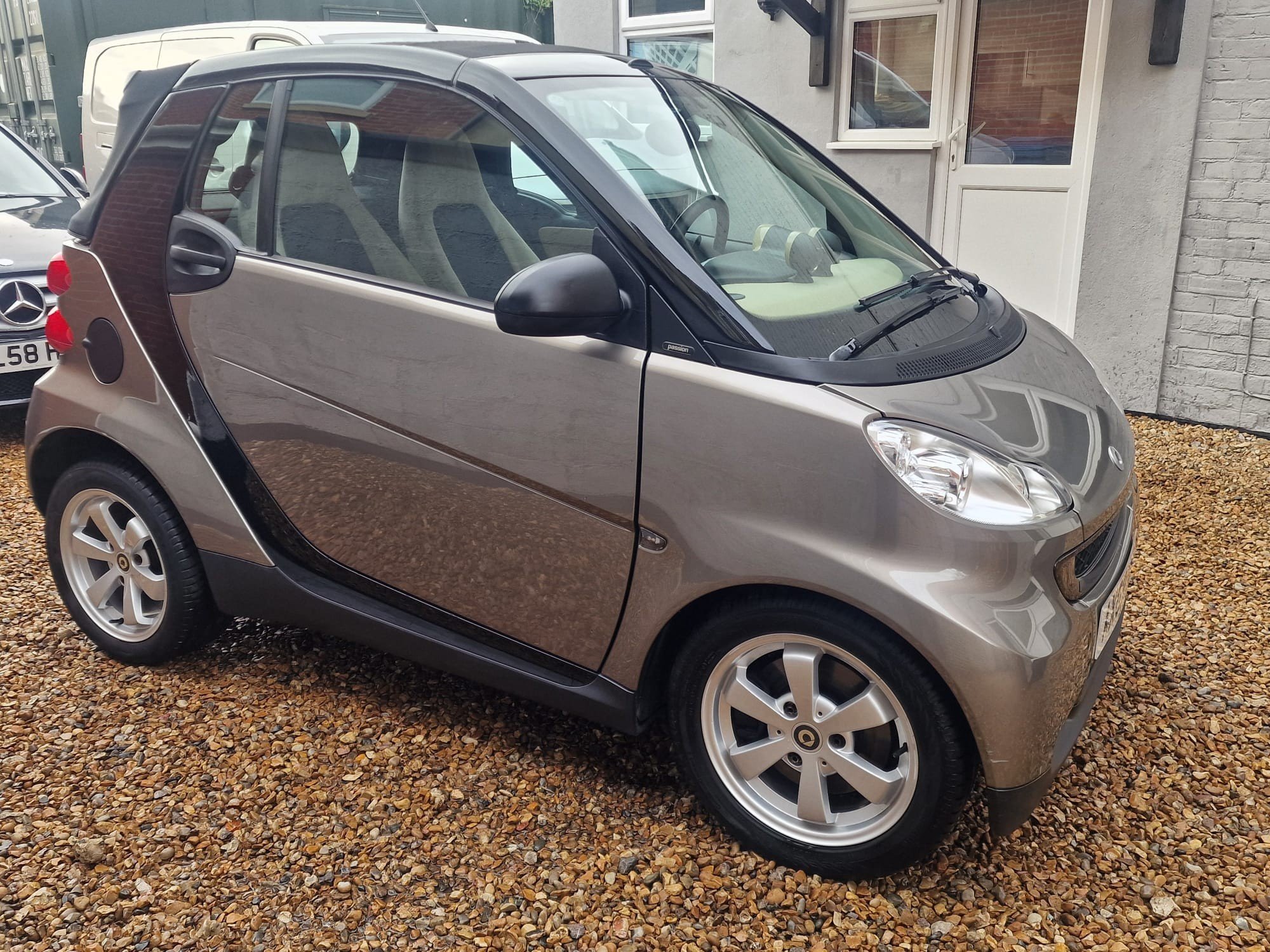 LEFT HAND DRIVE,SMART FOUR TWO PASSION 1.O TURBO CABRIOLET AUTO/PADLESHIFT,COVERED 92606 KMS/57542 MILES WITH A FULL SERVICE HISTORY AND JUST SERVICED WILL BE SOLD WITH 1 YEARS MOT.3 MONTHS WARRANTY. FINISHED IN METALLIC GREY WITH GLOSS BLACK INSERTS,FULL ELECTRIC OPENING CONVERTIBLE ROOF BEIGE INTERIOR, AIRCON, POWER STEERING, CD,HEATED SEATS,REV COUNTER, ELECTRIC WINDOWS, LEATHER WHEEL,REAR HEATED WINDOW,CUP HOLDERS, REAR SHELF,REMOTE LOCKING WITH 2 KEYS, 15 INCH ALLOYS ALL GOOD TYRES,FRONT LED RUNNING LIGHTS SUPERB CAR THROUGHOUT..1 YEAR MOT ,SERVICED, PRE DELIVERY INSPECTION, 3 MONTHS WARRANTY....